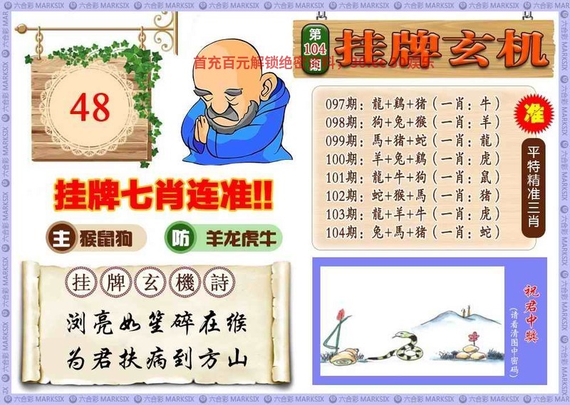 105期:单(猪兔蛇鸡)双(龙鼠马猴)狗44错 |