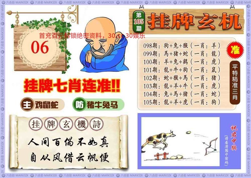 105期:港彩挂牌家野中特【家禽】开:狗44中 |